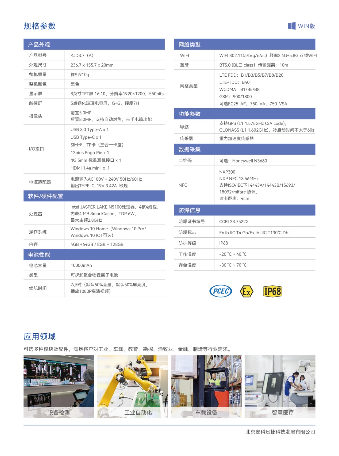 KJD3.7(A)本质安全型平板电脑 WIN