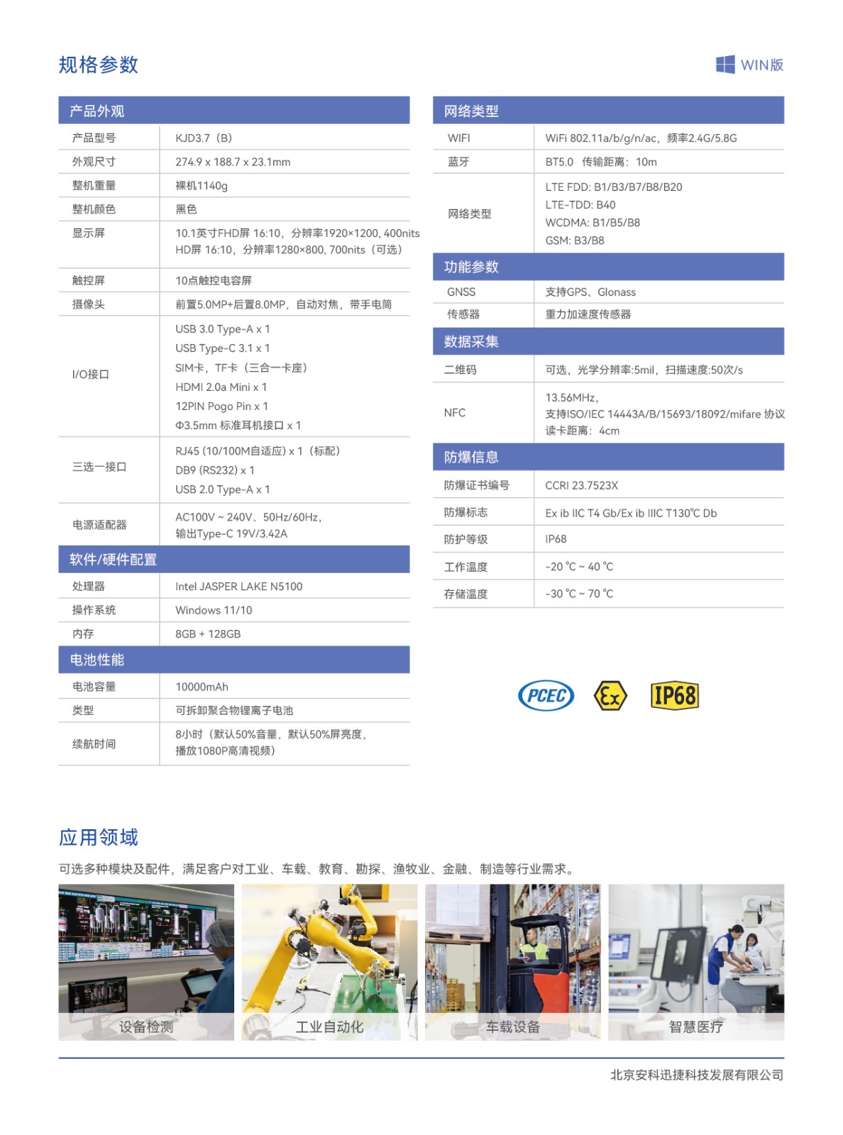 KJD3.7(B)本质安全型平板电脑 WIN